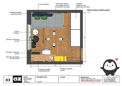 com vistas e planta baixa cotados e especificados para o caso de haver móveis sob medida ou detalhamentos de itens do estilo “Faça você mesmo” do ambiente.